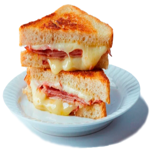 Pão, manteiga, ovo, presunto e mussarela